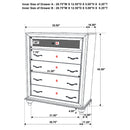 Exceptionally designed for transitional bedrooms, this five-piece bedroom set includes a panel bed frame, single two-drawer nightstand, five-drawer chest, and seven-drawer dresser with mirror, all in a crisp white finish with shiny metal hardware with faceted crystal accents. The paneled headboard and footboard offer channel tufted paneling wrapped in a metallic leatherette upholstery. Other extra touches include frame molding, turned feet, and felt lined top drawers. The nightstand offers a convenient power outlet for charging devices before bed. Place this bedroom set in a home to lend a more glamorous vibe.