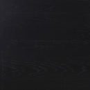 Introducing a beautiful dining room collection with clean, modern lines. The dining table boasts a oak veneer top with a black finish and a stunning tambour base design featuring fluted patterns on the double pedestal legs. The mid-century-inspired dining chairs have cushioned arms wrapped in durable charcoal grey fabric, offering comfort and style for any casual dining room.