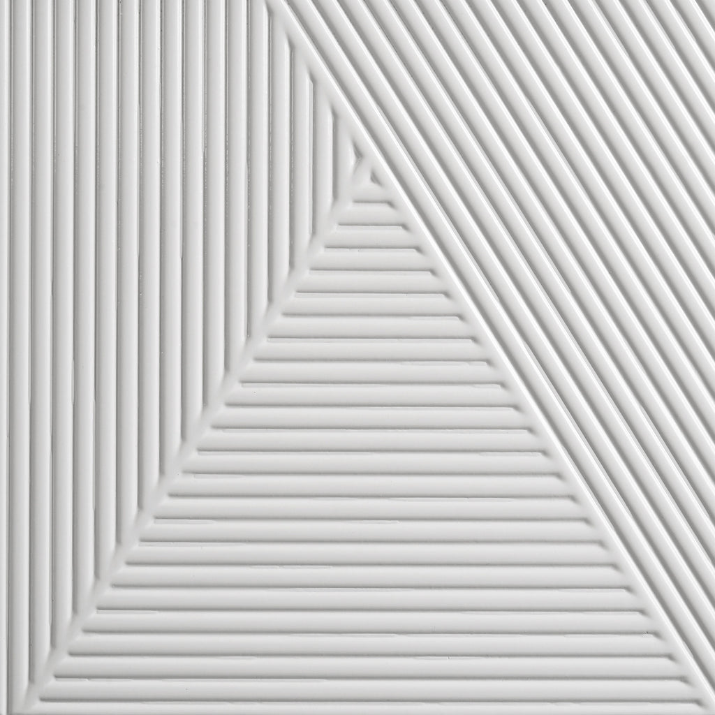 With its sculptural drawer fronts and crisp white high gloss finish, this nightstand brings a fresh, modern edge to the bedroom. Two spacious drawers feature dimensional geometric textures and sleek chrome-finished pulls, while the top drawer is lined in black felt for added refinement. Built-in USB-A and USB-C ports on the back offer convenient charging access. Metal extension glides and polished surface details complete this bold yet functional bedside table. Key Features: • Modern nightstand in white high gloss finish features sculptural geometric drawer fronts • Dual USB charging port includes both USB-A and USB-C access at the back for convenience • Two drawers offer storage with top drawer fully lined in black felt for a refined interior • Chrome-finished drawer pulls complement the bold dimensional pattern and sleek surface • Equipped with 45mm metal extension glides for smooth and quiet operation • Crafted from engineered wood for clean lines and durable everyday use