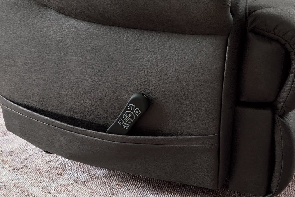 Specifications Dimensions 47''W x 41''D x 42''H Weight 156.0lbs. Brand Name Signature Design by Ashley® Material Fabric Lifestyle Traditional Shade Dark Assembly Assembly Not Required UPC 24052964363 Features Power Reclining Lift Recliner Jumbo Stitch.