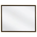 Create an interesting visual in a modern bedroom with the geometric features from this eastern king four-piece bedroom set. The high upholstered headboard adds depth and warmth with a smoked peppercorn finish. Versatile in style, this set is complete with a nine-drawer dresser and two-dresser nightstand and included shelf. Bring structure and personality to a room with the retro inspired details. Clean and elongated, the mirror looks great above the tall dresser.