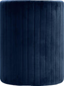 Create a chic atmosphere with this Selena Navy Velvet Accent Chair. This handsome chair has a fun barrel design that lends contemporary charm to a bedroom, living room or sitting room. The chair and matching included ottoman are covered top to bottom in plush velvet for a sumptuous look. Channel tufting adds a visually exciting finish to this elegant pair.