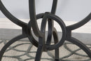 Aviano presents a contemporary dining masterpiece that's truly captivating. The meticulously crafted metal table base boasts four curvaceous legs converging around an interlocking ring waist, adorned with a surprising gunmetal finish. Crowned with a 6mm 48" diameter clear tempered glass, it seamlessly blends grace and modernity. Discover the allure of the transitional glass dining table, exuding casual charm. Its clear glass round elegantly rests on a captivating base with four stylized M legs, artistically interlocked in a ring motif and adorned with a rich gunmetal finish. At 30 inches, it's the perfect addition for a chic breakfast nook or a stylish eat-in kitchen, infusing a touch of timeless elegance.