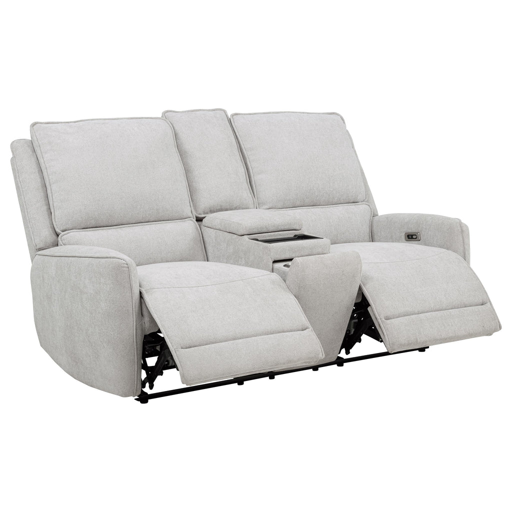 Designed for those who seek comfort without compromise, this power reclining sofa set transforms any space into a soothing sanctuary. Draped in dove grey chenille, each piece features sculpted seating, generously padded cushions, and smooth power-operated recline at the touch of a button. Built-in anti-pinch safety mechanisms pause movement upon contact, offering both luxury and protection. It's a collection that brings ease, elegance, and confidence to every seat. Key Features: • Power reclining sofa set with plush cushions and sculpted seats for cozy modern lounging • Dove grey chenille upholstery provides soft texture and a clean neutral appearance • Each seat features push-button recline for smooth, effortless comfort adjustment • Supportive backrests and foam padding ensure full-body relaxation in every position • Anti-pinch safety function stops motion if resistance is detected mid-recline • Built from pine, plywood, and metal to deliver long-lasting strength across the set