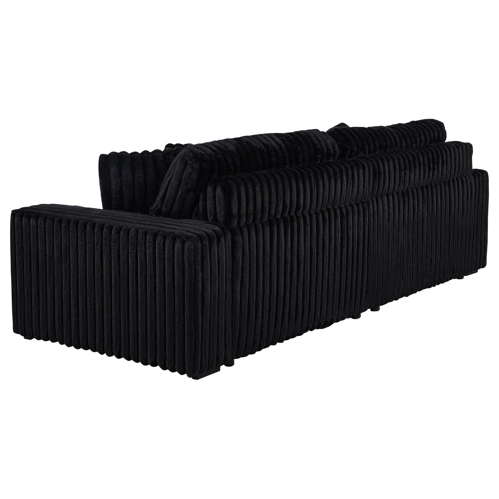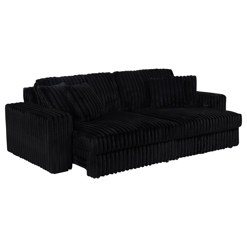 Striking and indulgently soft, this modern sofa set blends bold styling with innovative comfort. Deep vertical channel tufting enhances the rich corduroy upholstery, while dual power chaise functionality allows either side to extend independently, transforming the sofa into a full lounging surface. Wide arms, plush foam cushioning, and an integrated control panel with USB-A and USB-C charging bring next-level convenience. Designed for luxurious, tech-savvy relaxation. Key Features: • Contemporary sofa set in ivory corduroy features deep channel tufting and dual power chaise design • Each side of the sofa extends independently for custom comfort and spacious lounging • Wide padded arms and plush foam cushions offer sculptural comfort and bold modern form • Integrated control panels includes both USB-A and USB-C ports for convenient device charging • Corduroy fabric upholstery delivers rich texture and soft-touch appeal for everyday luxury • Crafted from soft fabric, foam cushioning, and durable plastic framing for long-lasting use